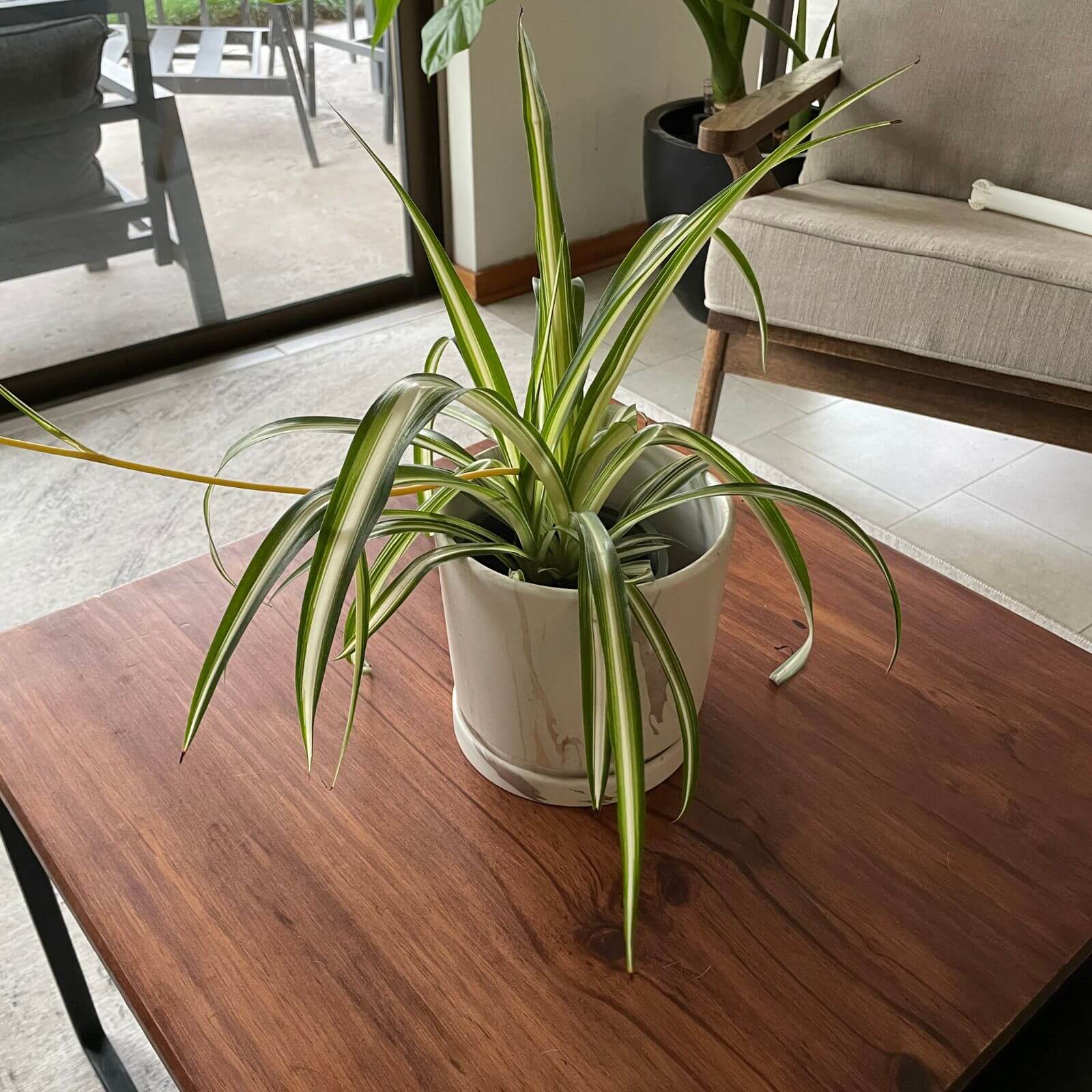 La Cinta Variegada, también conocida como Mala madre o Lazo de amor, es una de las plantas más queridas y resistentes del mundo. Sus hojas largas y arqueadas, con franjas verdes y crema, aportan luz y movimiento a cualquier espacio. Perfecta para quienes están comenzando con las plantas o buscan un toque natural sin complicaciones.